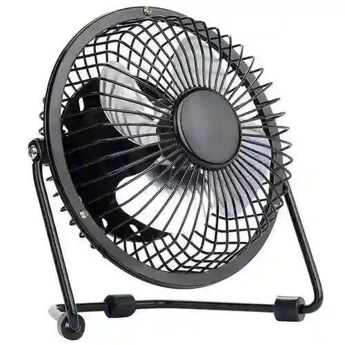 Descripción: VENTILADOR DE ESCRITORIO metálico. Conexión USB y Aspas de metal.