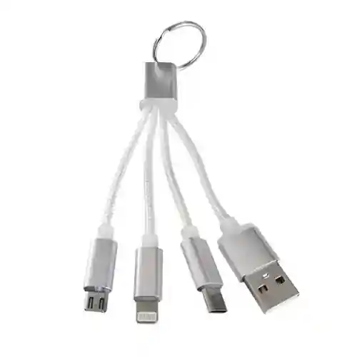Descripción: Multicable USB 3 en 1 para Carga de Energía. Conexión: V8 (Android), USB tipo C y Lighting (iPhone)