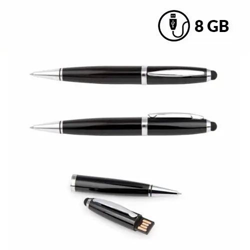 Descripción: Bolígrafo multifunción USB con stylus de suave goma.Cuerpo en acabado metálico brillante.Tamaño bolsillo para su fácil transporte.El bolígrafo tiene en la parte superior goma para utilizarlo como stylus.Tipo de conector USB-A.Conectividad USB 2.0.Compatible con Windows, MacOS y Linux.Capacidad de 8 GB
