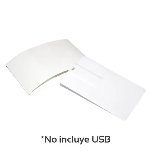 Descripción: Caja de cartón color blanco para Memoria USB en forma de Tarjeta.